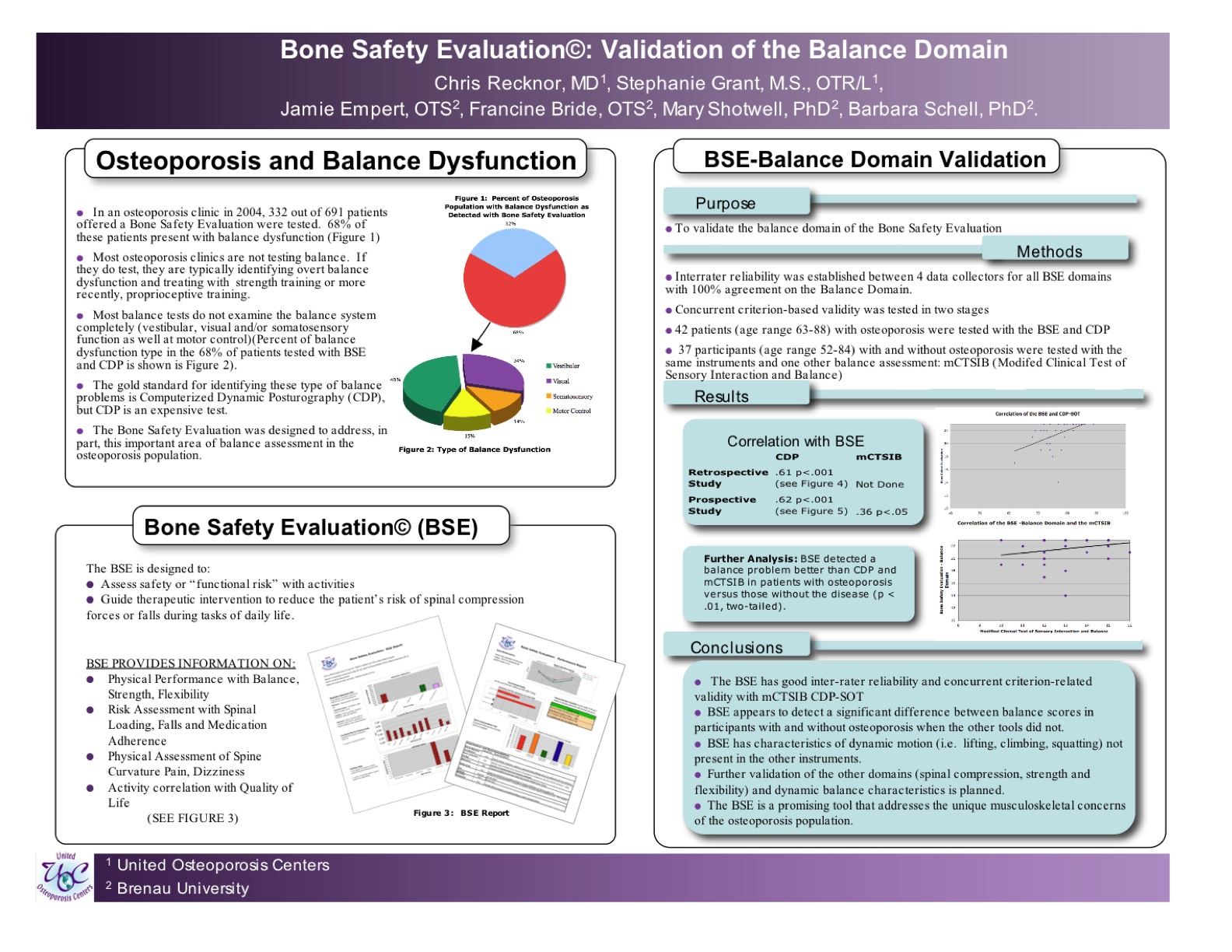 Empert JE, Bride FL, Schell B, Grant S. Validation of the balance domain of the Bone Safety Evaluation: A tool for measuring physical functional performance in people with osteoporosis. 2005. Available at: http//www.geron.uga.edu/pdfs/SMC/2005/StuConvProgram05.indd.pdf