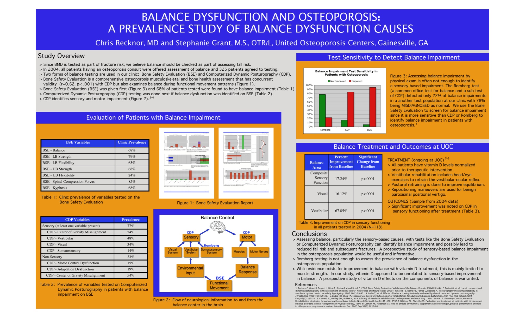 Recknor C, Grant S. Balance Dysfunction and Osteoporosis: A prevalence study of balance dysfunction causes. OI. 2007;18(Suppl 2):S193-S244.