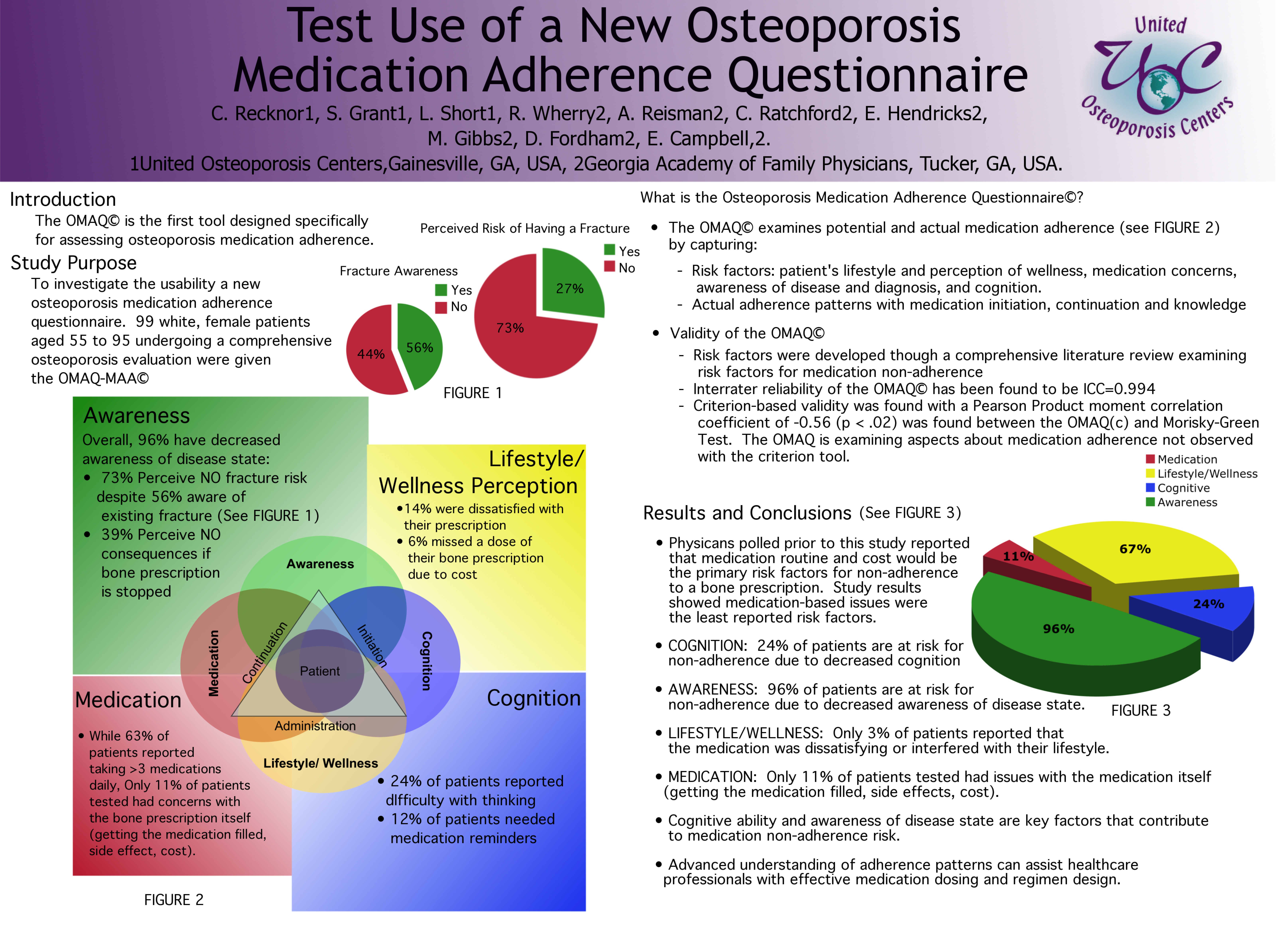 Recknor C, Grant S, Wherry R, et al. Test Use of a New Osteoporosis Medication Adherence Questionnaire. 2006. Available at: ASBMR website [Accessed November 5, 2008].